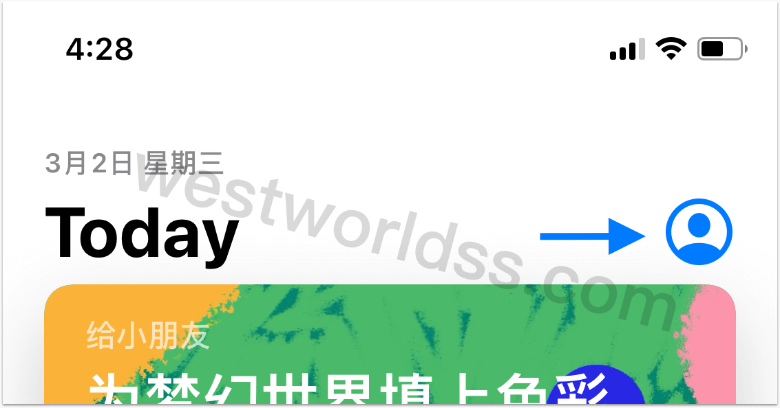- 在 App Store 中点击右上角头像